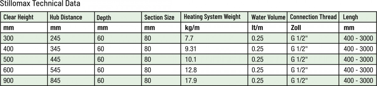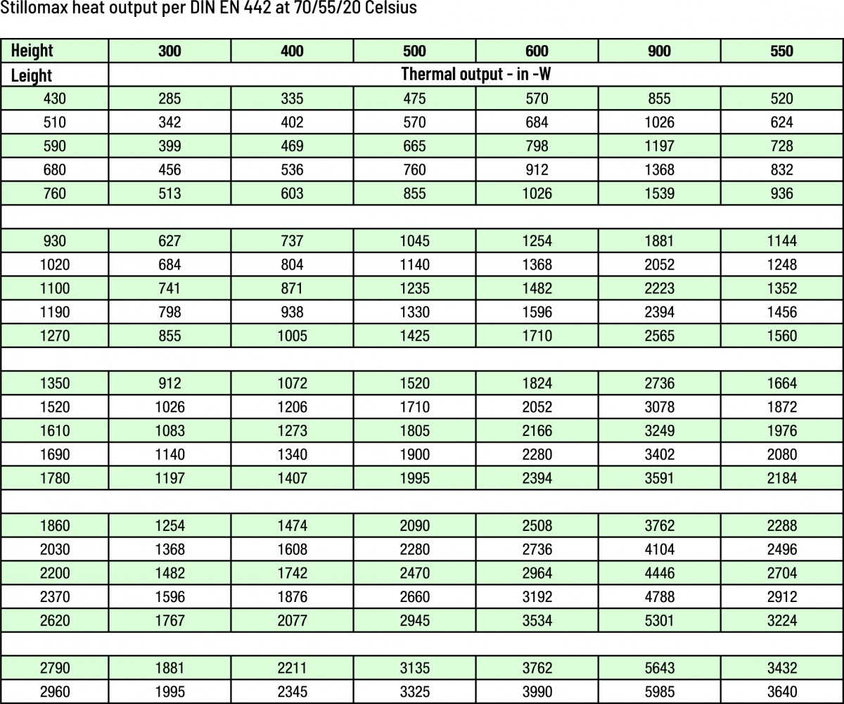 Our model ProPRO surpasses the heat output at comparable height/lenght of standard radiators type 21 and 22